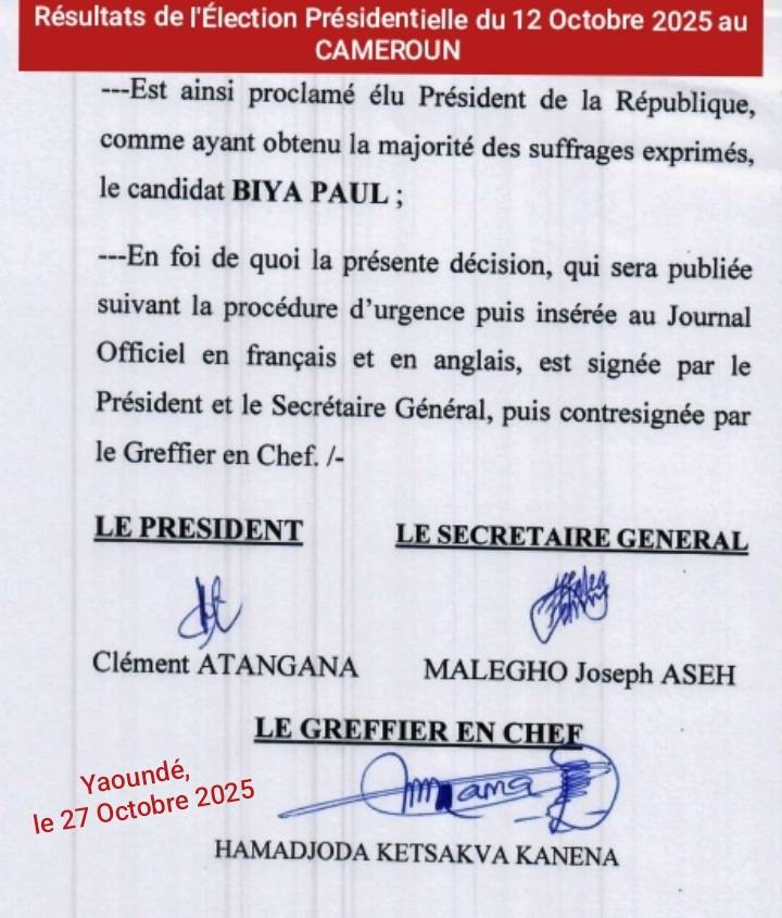 Le Conseil constitutionnel a proclamé les résultats de l’élection présidentiel du 12 octobre au cours d’une audience solennelle le 27 octobre 2025. Voici les résultats détaillés qui en résultent.